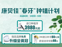 苏州康贝佳“春牙”种植计划活动时间3月1日-30日。 进口种植牙3980元每颗起;指定品牌免费升级全瓷冠;3M进口补牙88元每颗;舒适洁牙仅需88元……【详细】